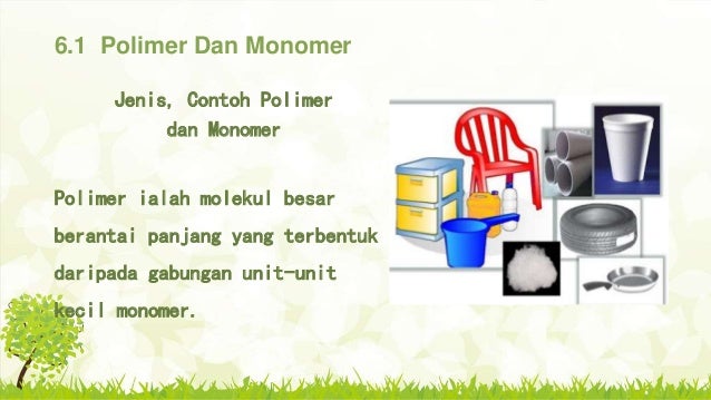 Unit-unit molekul kecil ini dipanggil monomerPolimer dibahagikan kepada dua jenis iaitupolimer semula jadi polimer sintetik. Beg plastik botol mineral plastik Tidak boleh cair dan. Mengkaji Proses Penyahpolimeran Dan Pempolimeran 4.