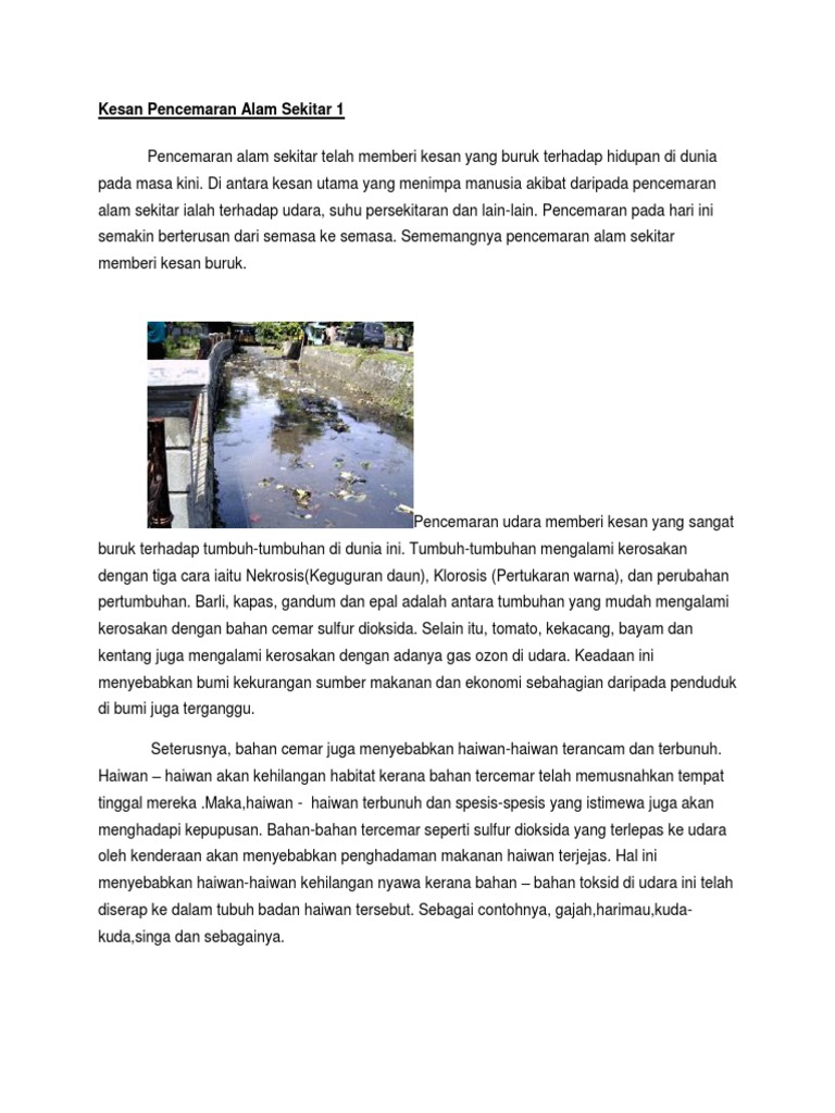 Kesan Pencemaran Alam Sekitar 1 Pdf