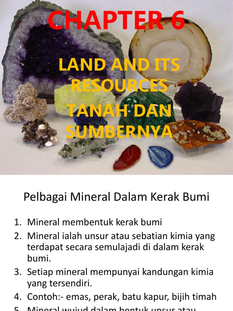 Nyatakan dua contoh mineral sifat kimia atau sifat fizik mineral dan kegunaannya dalam kehidupan harian. Mineral adalah suatu bahan hablur pejal yang terbentuk secara semulajadi selalunya melalui proses inorganic tidak berbentukberhayat. Mineral Sifat Kegunaan 5.
