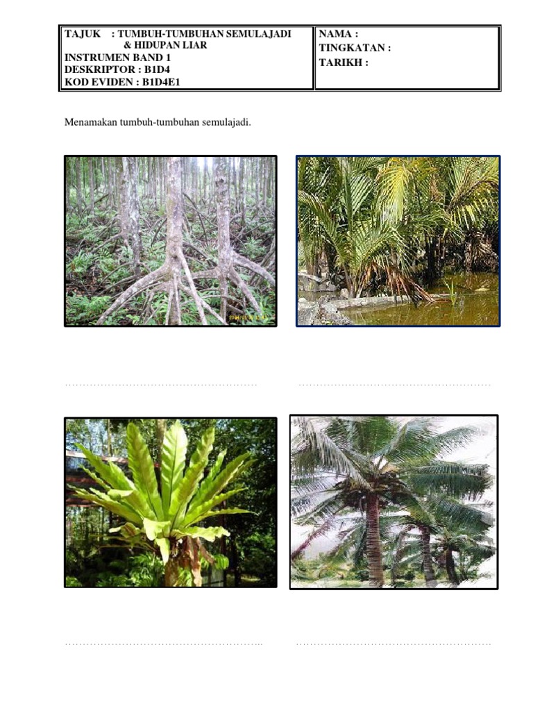 Merumus tentang kepentingan semulajadi secara grafik. Objektif Kajian 1Menyenaraikan jenis tumbuh-tumbuhan semulajadi dan hidupan liar negara Malaysia 2Mengenalpasti struktur atau profil tumbuhan semula jadi. 1 Kawasan Gurun Panas a Mojave b esparto c Nokturnal d Transpirasi 2 Pokok jenis ini sahaja yang boleh hidup di kawasan gurun a Podzol b Xerofit c Nokturnal d Hibernasi 3 Tumbuhan semulajadi di kawasan gurun a Transpirasi b Silinder c Rumput esparto d.