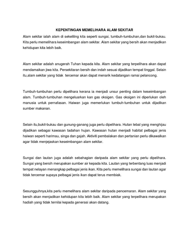 Kepentingan Menjaga Alam Sekitar Pdf